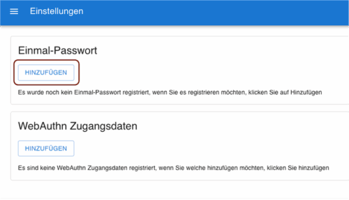3. Im Bereich Einmal-Passwort klicke auf [Hinzufügen].