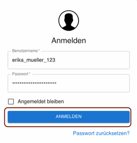Gib deinen Benutzernamen und dein Passwort ein und klicke auf [Anmelden].