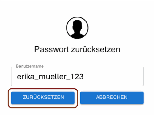 2. Gib den Benutzernamen ein, den du per E-Mail erhalten hast, und klicke auf [Zurücksetzen].