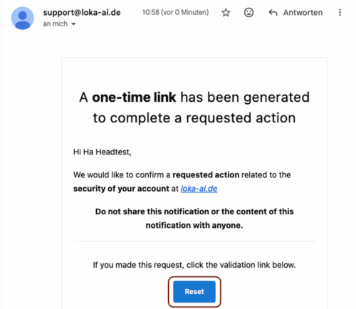3. Du erhältst eine E-Mail von support@loka-ai.de.